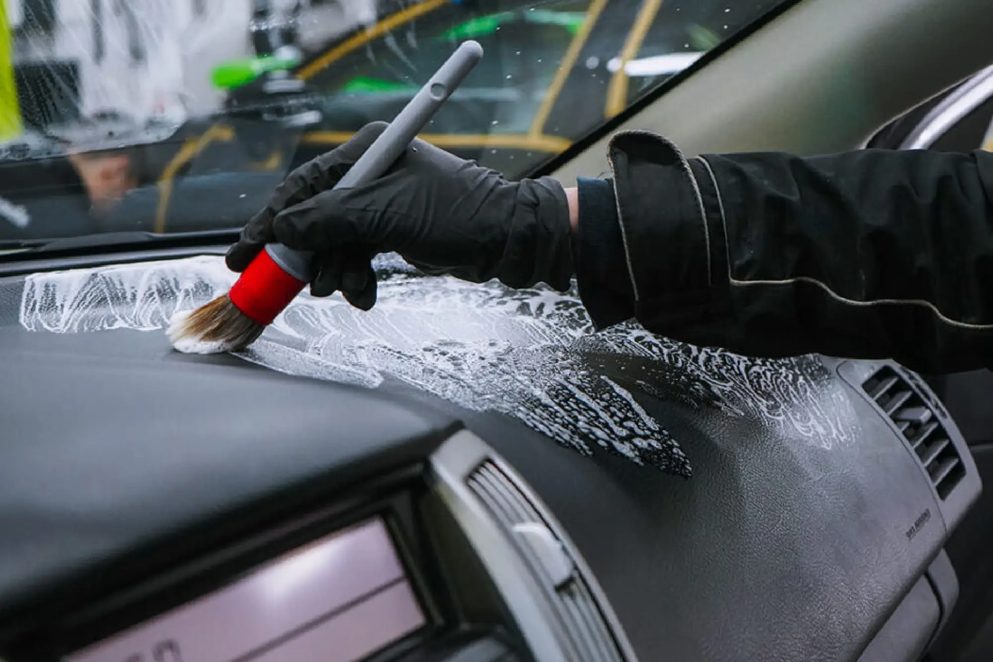 Detailers use specialized tools to clean tiny cracks, air vents, cup holders, and under seats—places you can't clean with a standard home vacuum.